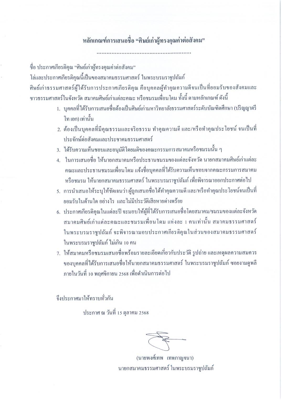 การเสนอชื่อ ศิษย์เก่าผู้ทรงคุณค่าต่อสังคม ปี 2568